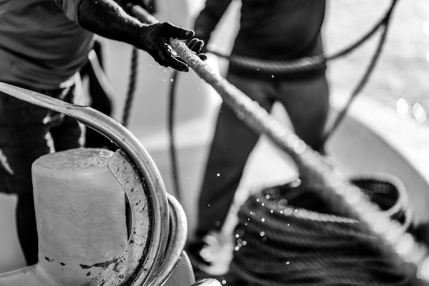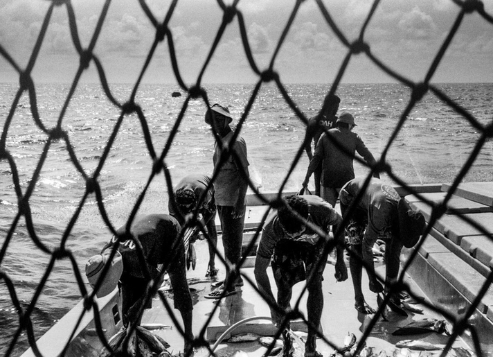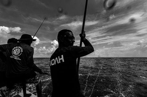 Pole and line fishermen are using a traditional and sustainable method of fishing. Fish are hooked and flicked over the head of the fishermen and onto the deck. Assuring low levels of bycatch and fishing at sustainable rates, allowing fish populations to remain healthy. Fewer sharks, turtles, whales and dolphins will be caught. It is a selective method.